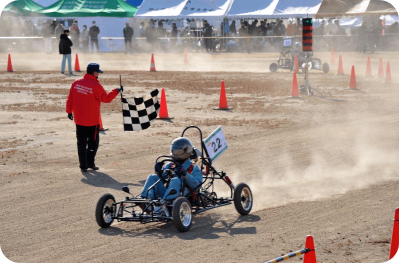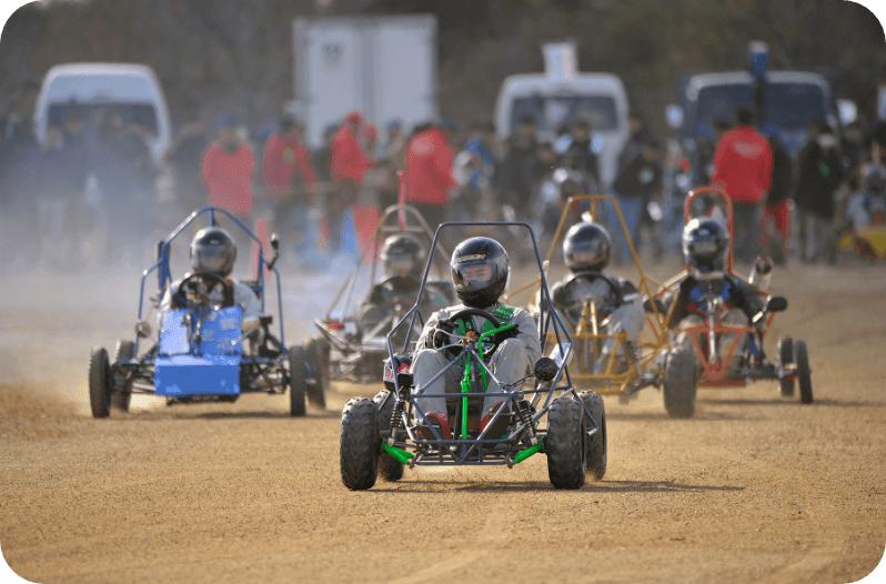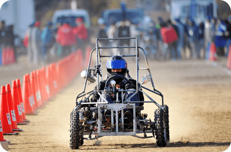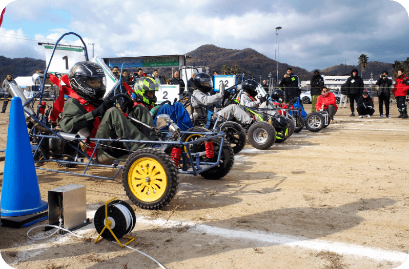 本大会は、高校生を対象とし、ものづくりの一環として同じレギュレーションに基づき、創意工夫した自作の車両で完成度を競う競技会です。